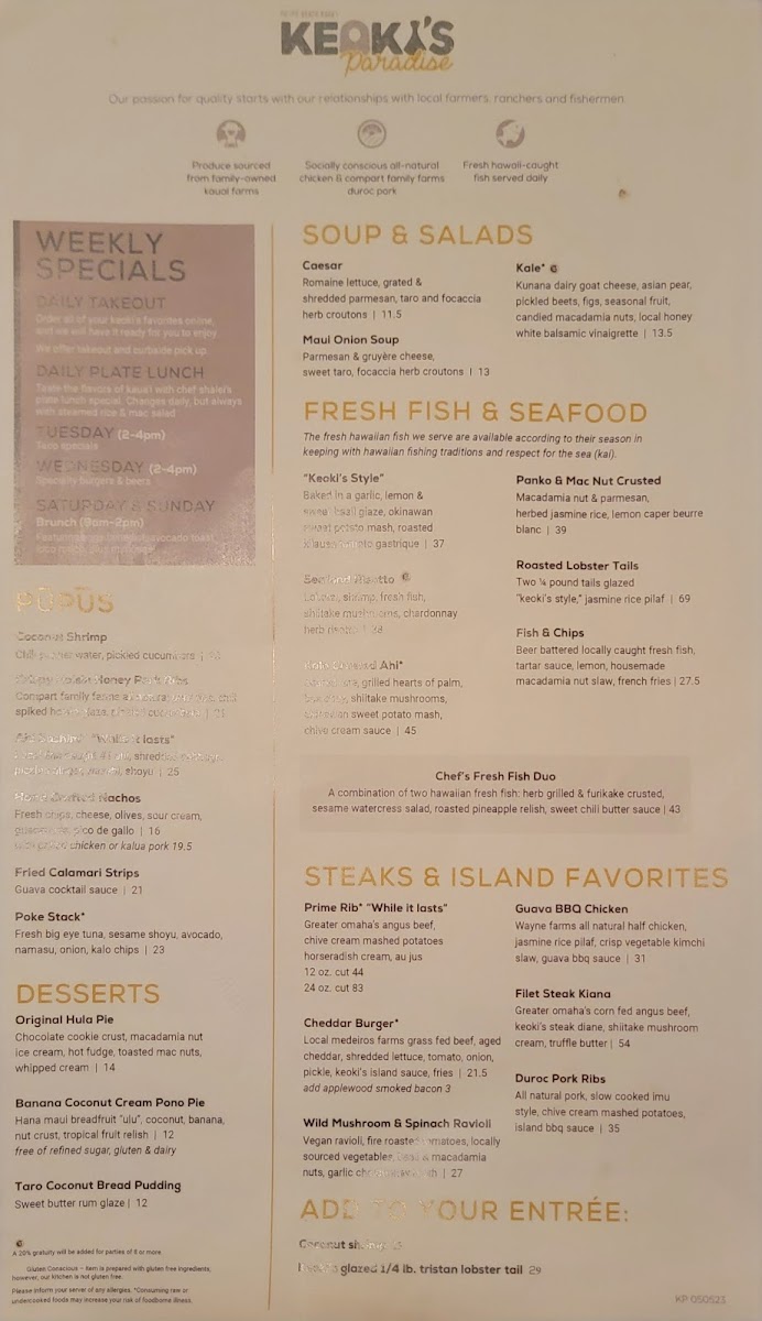 Welcome to Keoki's Paradise, a delightful Hawaiian restaurant nestled in the heart of Koloa, Hawaii. Known for its vibrant atmosphere and mouthwatering menu, Keoki's offers more than just a meal; it promises a sensory experience that will transport you to the islands with every bite.
