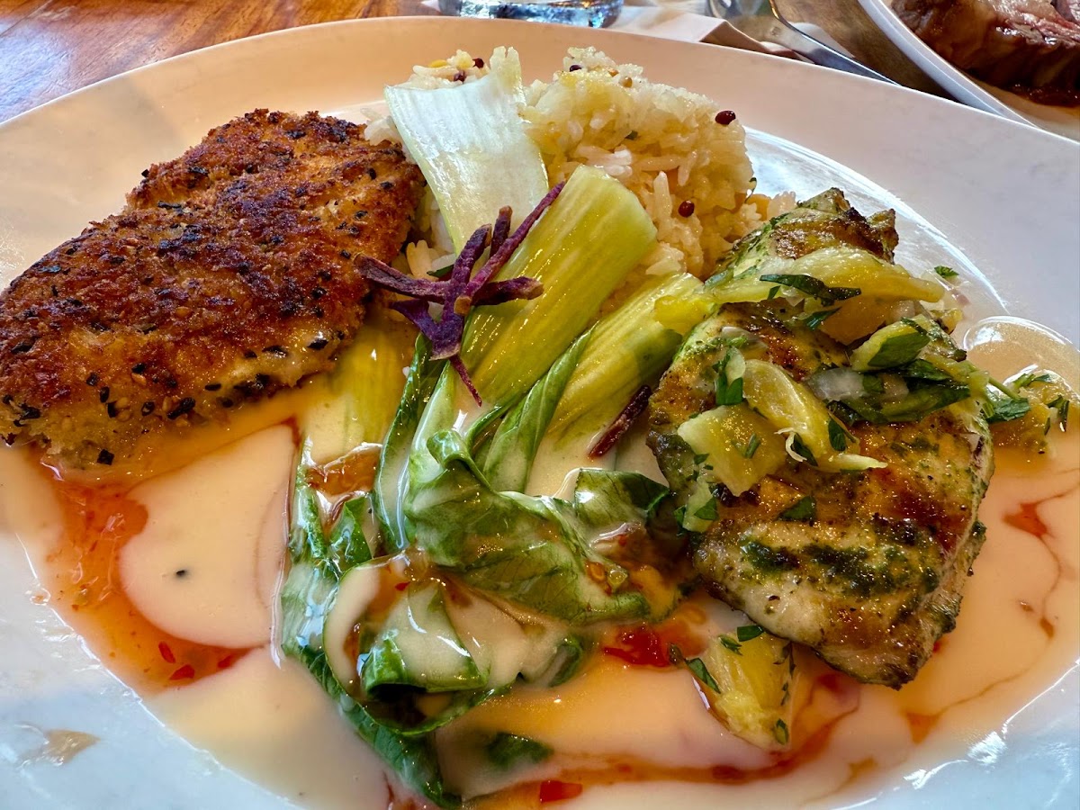For lunch, consider indulging in the Fish Tacos, where Cajun grilled mahi-mahi meets perfectly textured flour tortillas, drizzled with roasted tomatillo aioli. If you're in the mood for something hearty, the Fish & Chips delivers stand-out flavor with its beer-battered mahi-mahi served alongside housemade macadamia nut slaw.